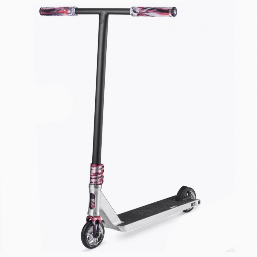 Модель с системой компрессии SCS, которая распространена в профессиональных трюковых самокатах, максимально устойчива к прыжкам и тяжелым приземлениям. Хотя она и имеет большой вес - безотказна при постоянном выполнении drop-in, backflip, и бар спинов. Компрессия в связке с высокопрочным Т-образным рулем из CrMo стали без пропила, дает максимально возможное сжатие из всех, рулевая колонка интегрированная и делает самокат легче, а промышленные подшипники износостойкие и не требуют постоянного обслуживания.